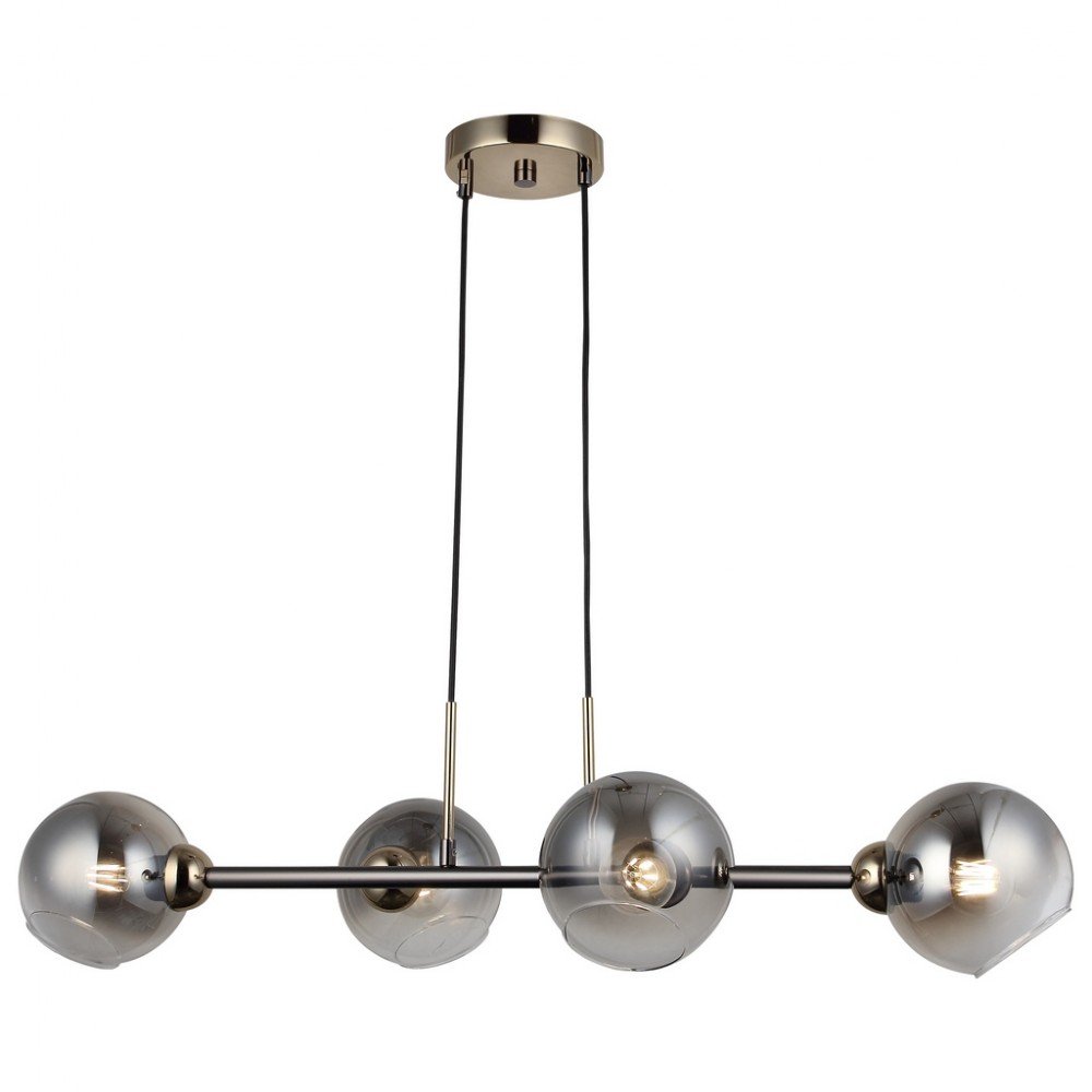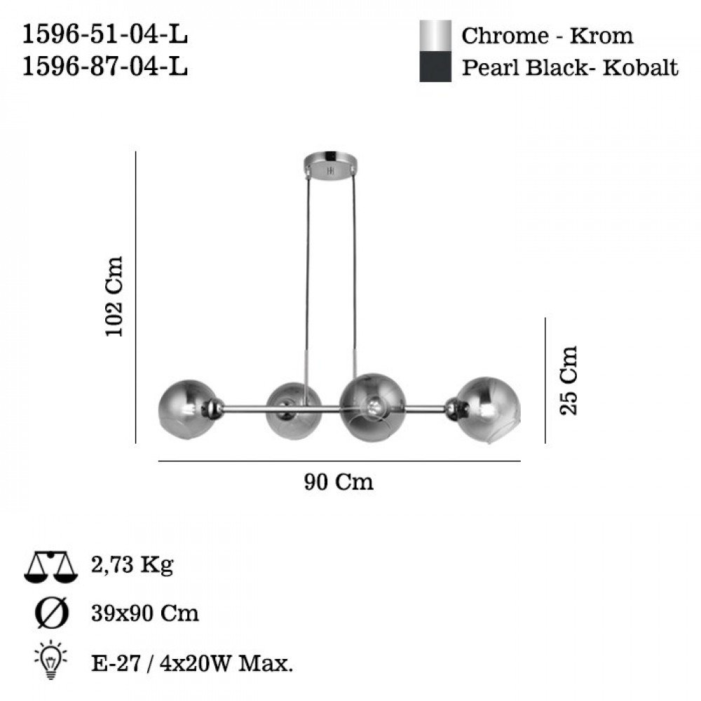 The BOLET 4‑Light Linear Chandelier is a refined contemporary lighting solution designed to complement modern and minimalist interiors. Its slim horizontal metal bar is paired with four evenly spaced smoky glass globes, creating a sophisticated visual rhythm while softly diffusing light for a warm and inviting atmosphere. The BOLET chandelier is available in Pearl Black (Kobalt) and Chrome finishes, allowing flexible styling to suit different interior concepts.