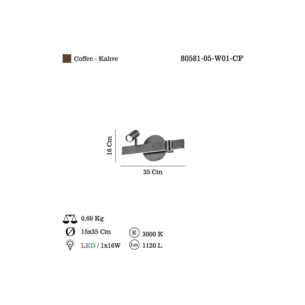 The CORTANA Applique is a refined statement piece that unites minimalist design with cozy illumination. Crafted in an elegant coffee color, this wall lamp’s sleek form (16 × 35 cm, 0.69 kg) complements both contemporary and classic interiors, adding a subtle yet luxurious touch.