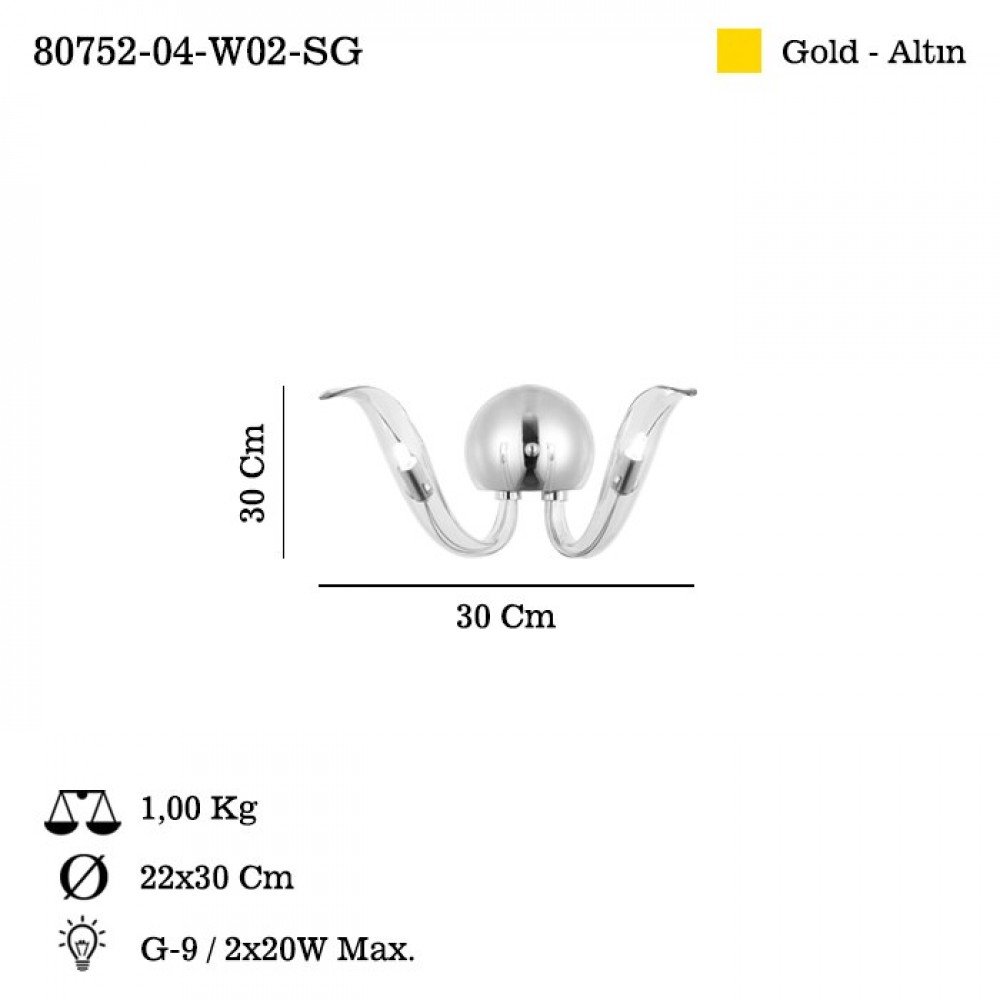 Finished in an elegant gold tone, the combination of clear sculpted glass and metallic detailing delivers a warm, inviting glow that enhances both modern and classic interiors. Precision-crafted in Turkey and backed by a 5-year warranty, this wall light offers lasting quality, visual sophistication, and dependable performance.