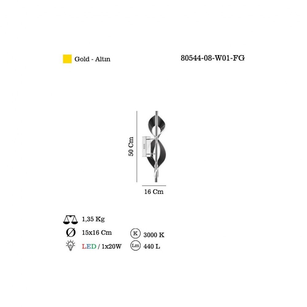 With dimensions of 50 cm in height and 16 cm in width, and a weight of 1.35 kg, LORINDA offers a slim yet impactful wall presence. Finished in refined Gold (Altın), it brings warmth and contemporary elegance to both minimalist and luxury interiors.