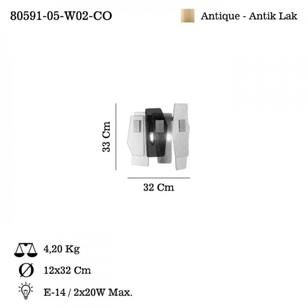 The MOCCA 2-Light Wall Lamp in Antique Brass (Antik Lak) features a bold geometric design with layered metal panels that create depth and character. Measuring 33 cm in height and 32 cm in width, it weighs 4.20 kg and operates with 2xE14 bulbs (max 20W each). Crafted in Turkey and backed by a 5-year warranty.