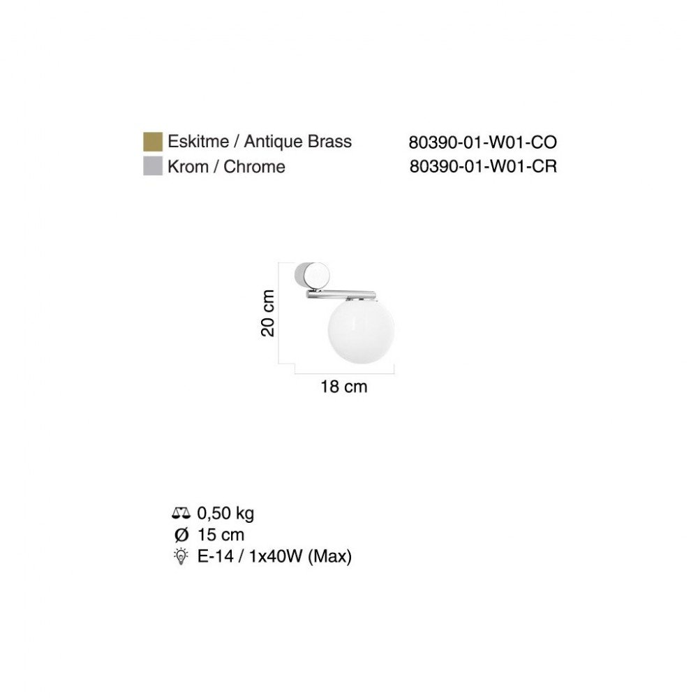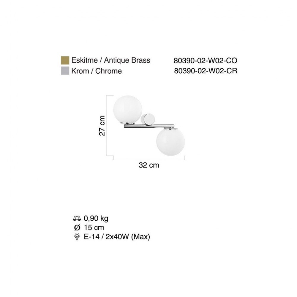 20×18 cm – E14 / 2×40W – Weight: 0.50 kg