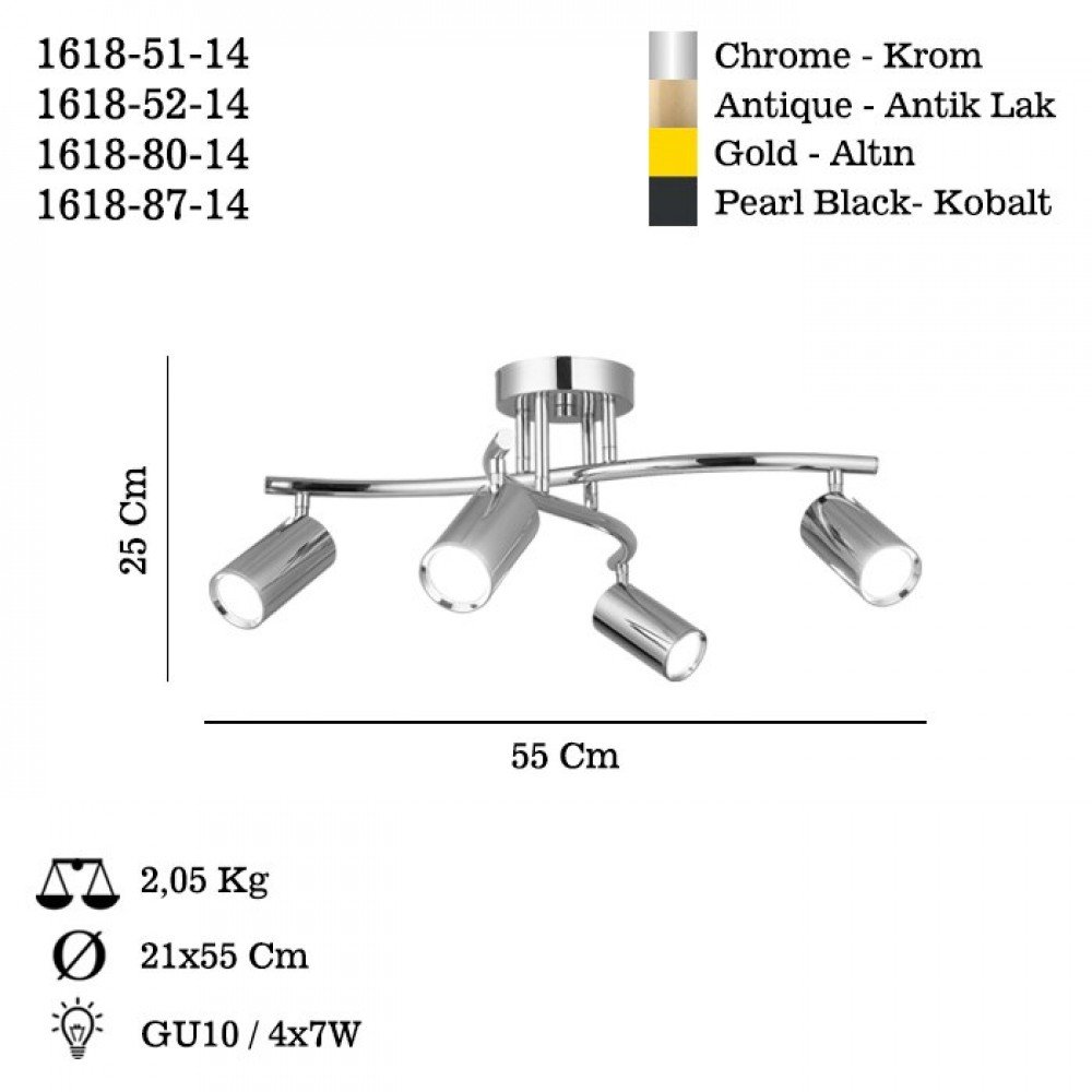 The SPOTTE Ceiling Lamp offers a modern and adaptable lighting design crafted with high-quality Turkish workmanship. Available in chrome, antique, golden, or silver, this versatile collection suits a wide range of interior styles—from contemporary to classic—making it ideal for living rooms, kitchens, hallways, offices, and commercial environments.