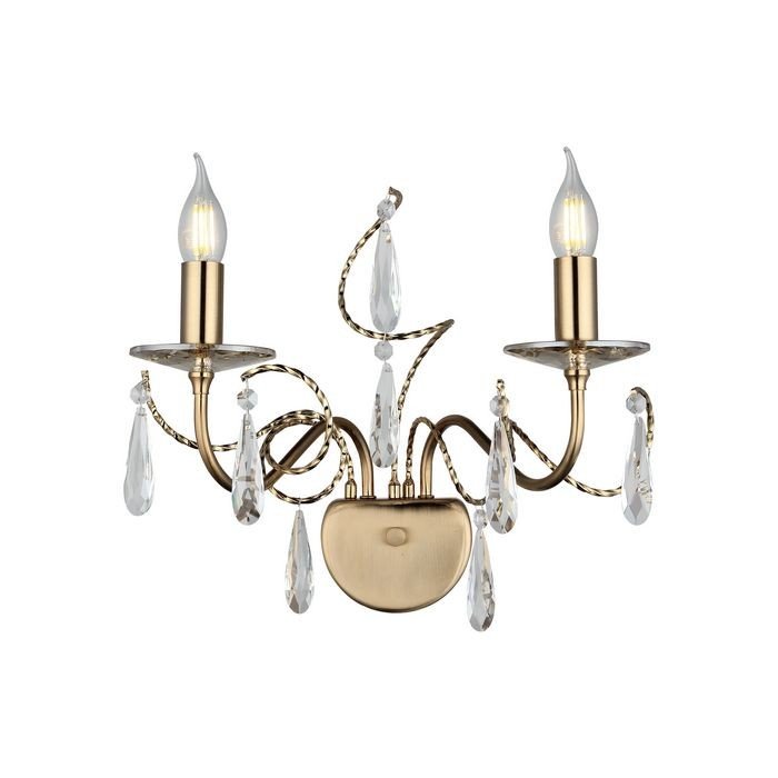Its dual candle-style arms create a balanced and symmetrical look, while the hanging crystal droplets reflect light beautifully, enhancing the ambient glow and adding a subtle sparkle to the surroundings.