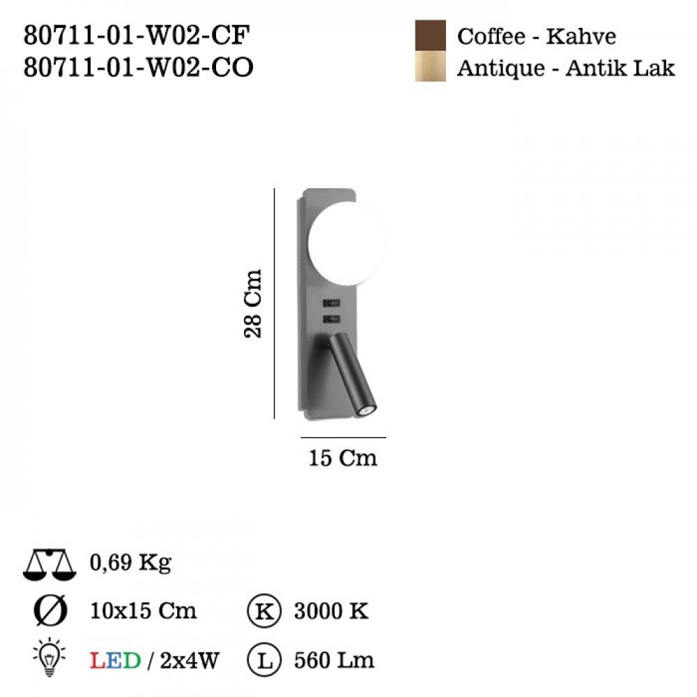 Available in Coffee (Kahve) and Antique (Antik Lak) finishes, ZENIKA complements both modern and classic interiors. Crafted in Turkey and backed by a 5-year warranty, it represents durability, functionality, and elegant design in one seamless lighting solution.